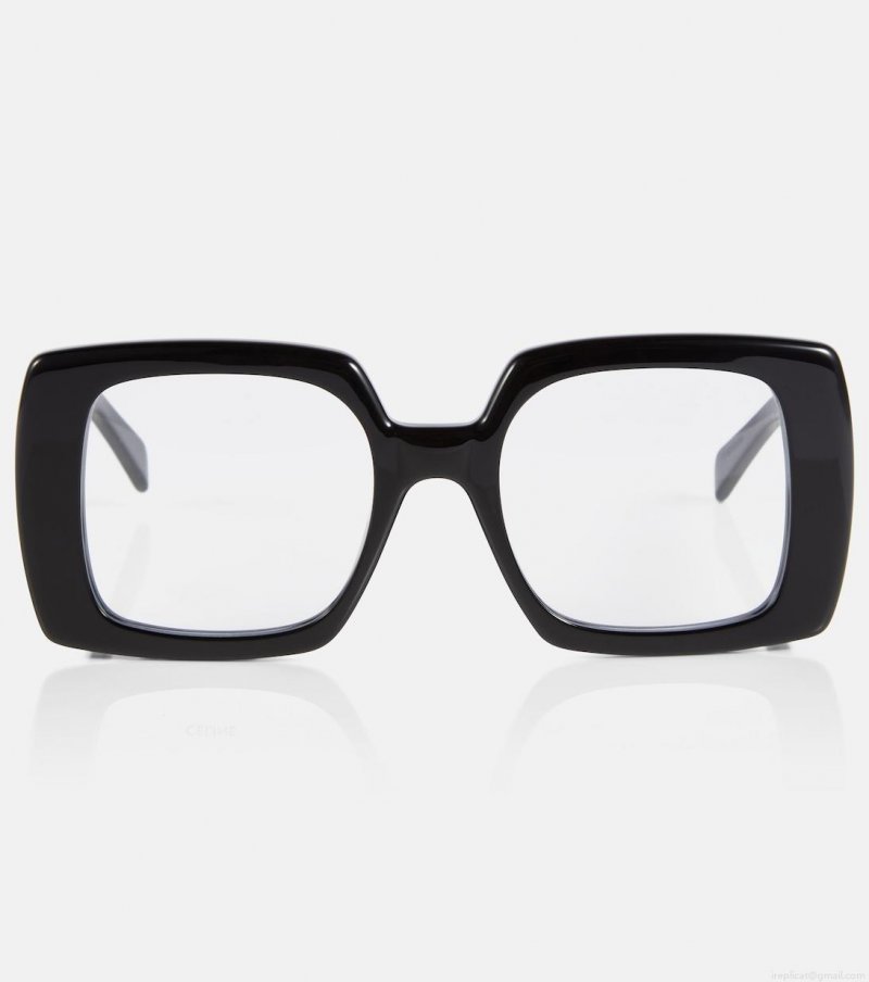 The Triomphe glasses from Celine Eyewear are made in Italy in an oversized square silhouette. They feature the house's monogram at the temples.