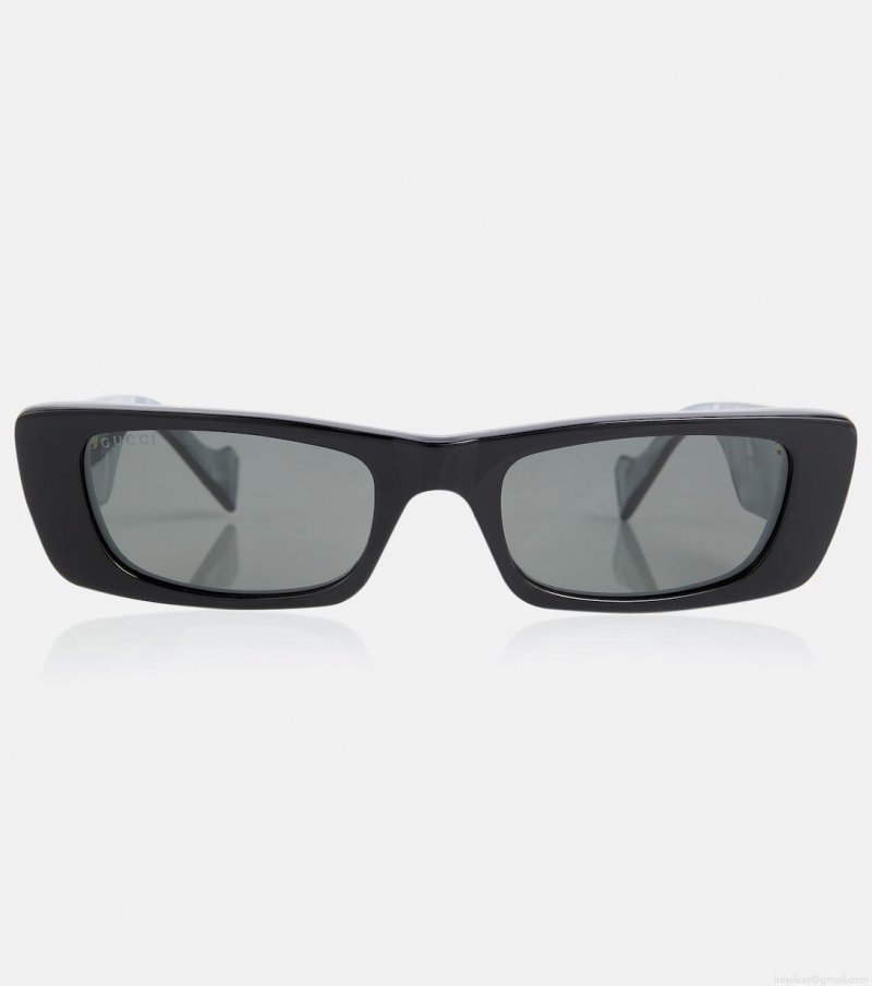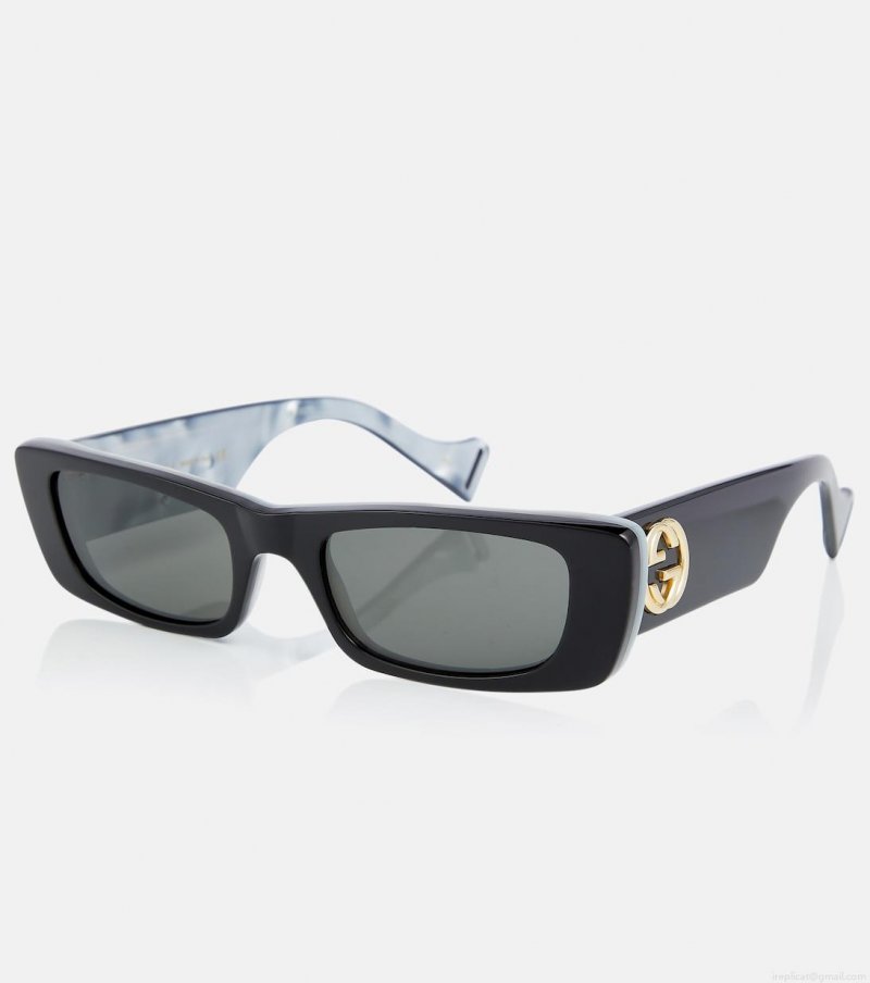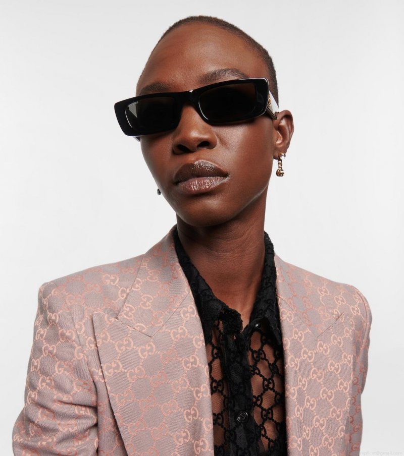 Recalling the favored shape from the '90s, these rectangular sunglasses from Gucci are a throwback style to covet. Crafted in Italy, the black acetate frame is backed with white, lending a mother-of-pearl effect. The iconic double G logo adorns the temple in eye-catching gold, so you can show off your brand loyalty. Please note that the color of the case may vary.
