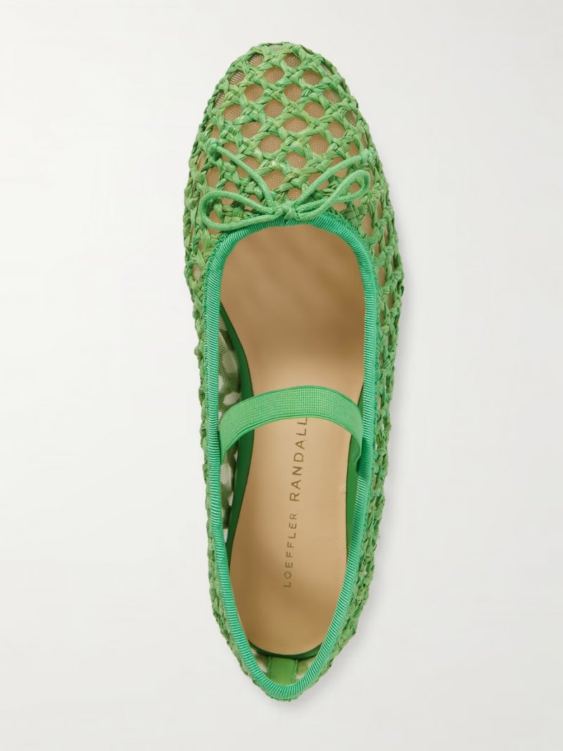 - Bright-green raffia and grosgrain