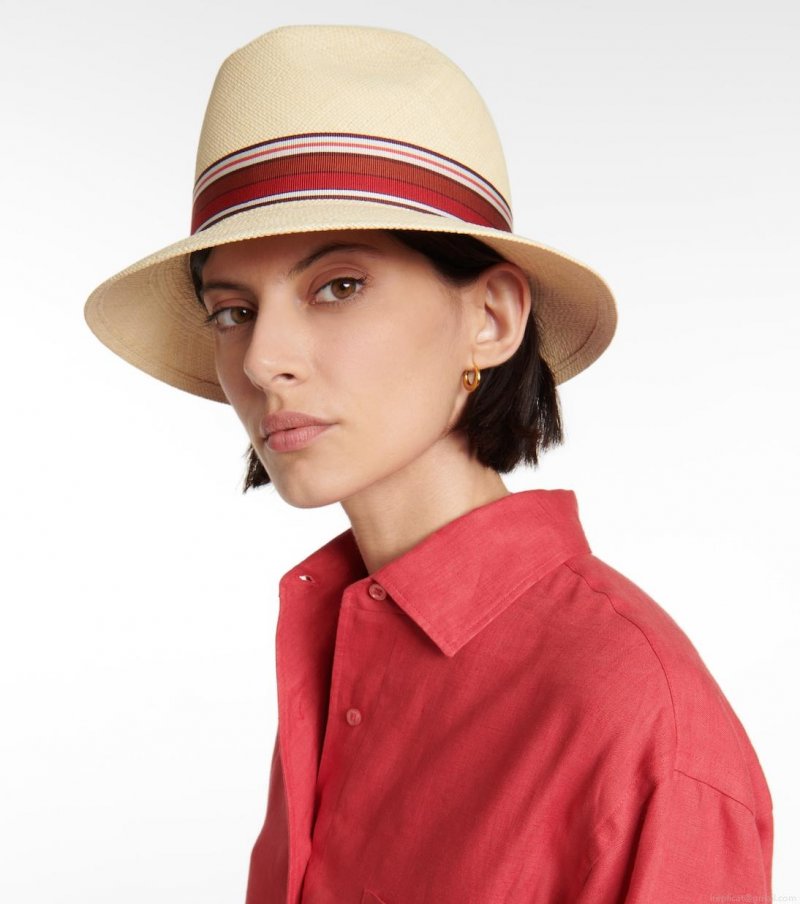 The Ingrid hat from Loro Piana is handwoven in Ecuador from wrinkle-resistant toquilla palm straw – a material that's only used in genuine Panama hats. Part of the house's Resort Capsule, it's finished with a grosgrain silk ribbon featuring The Suitcase Stripe motif.