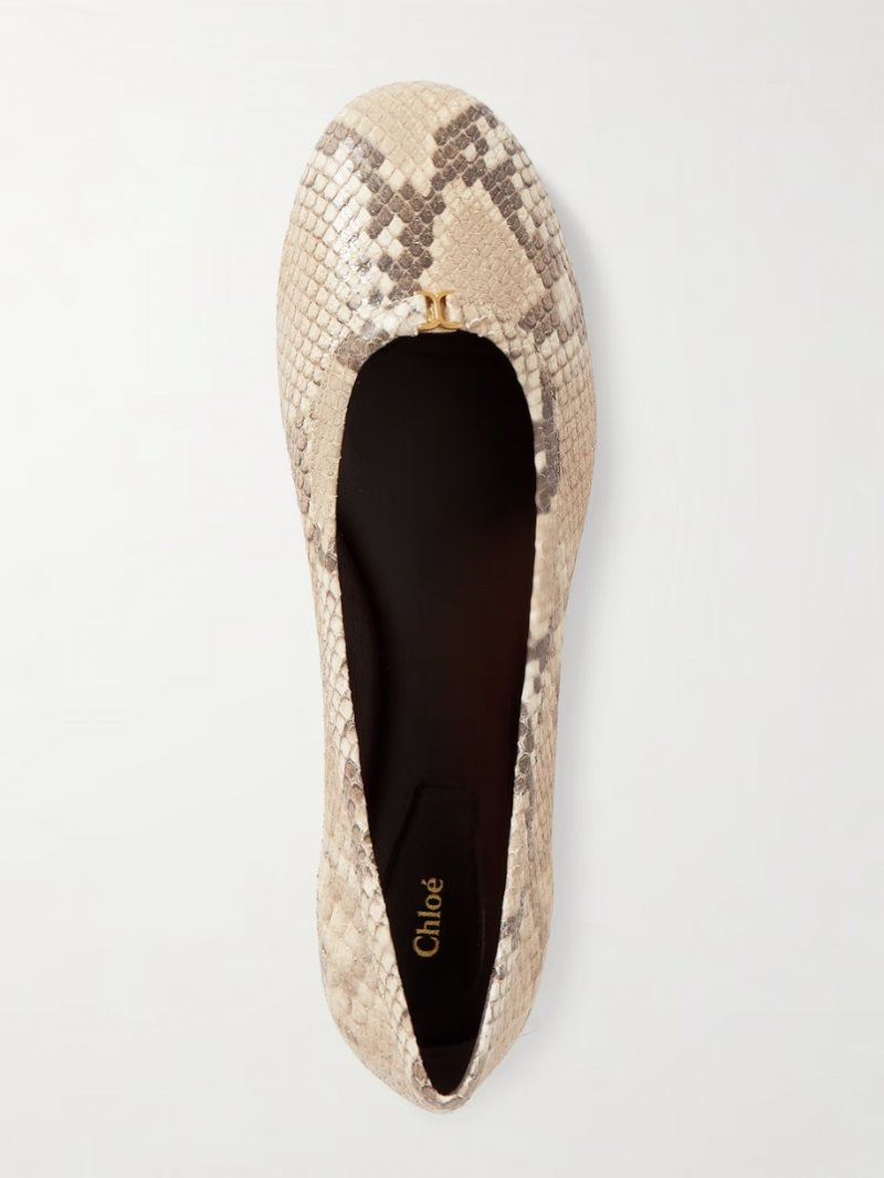 - Tonal beige and brown snake-print leather (Goat)