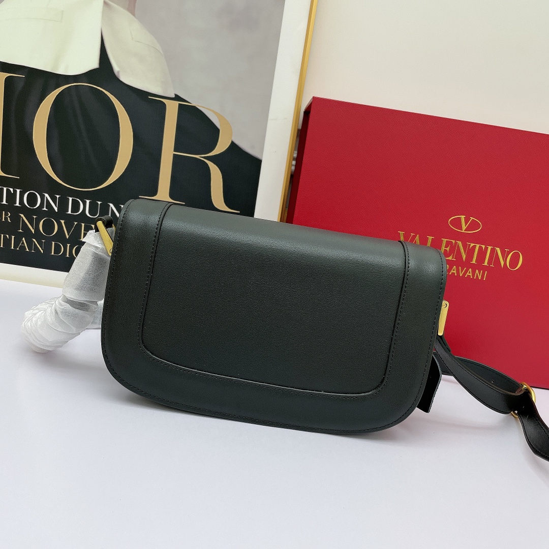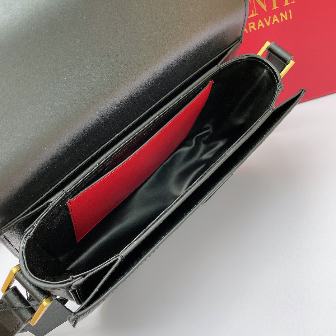 Valentino’s early spring runway collection features the Valentino Garavani MAXI Crossbody Bag, crafted from premium calf leather. The bag showcases a large metallic logo and comes with an adjustable shoulder strap. It is adorned with vacuum-plated metal hardware and a snap button closure. The interior boasts three storage compartments, one slip pocket, and ample capacity. The imported leather provides a soft and luxurious feel.