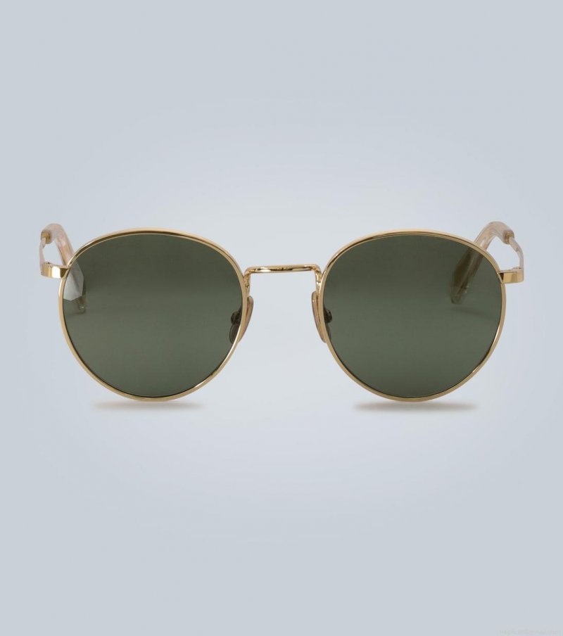 These Round frame sunglasses from Celine Eyewear feature a gold metal frame, bottle green tinted lenses, and come with a logo-embossed hard case.