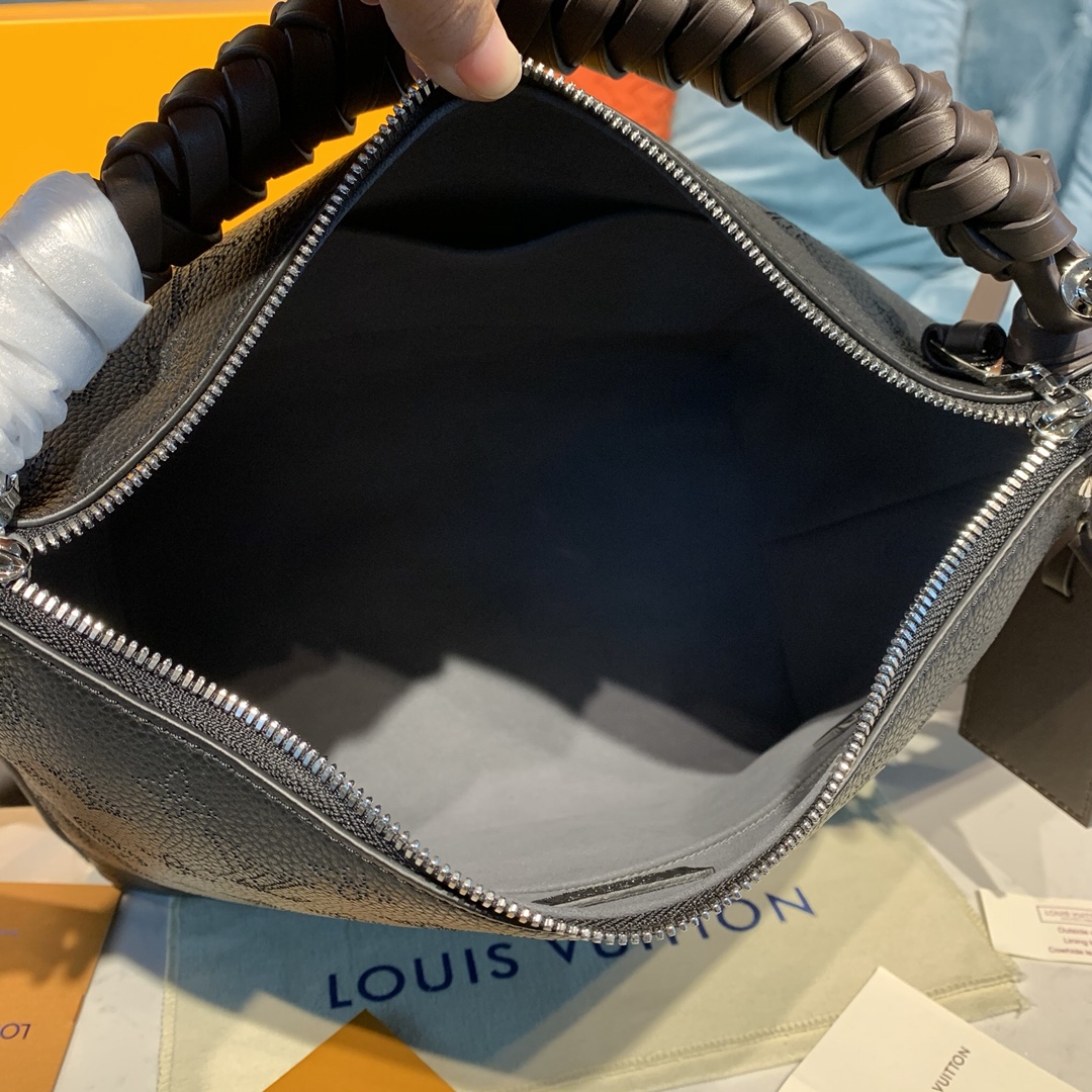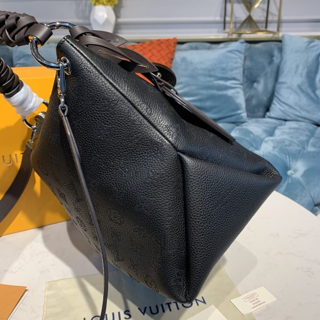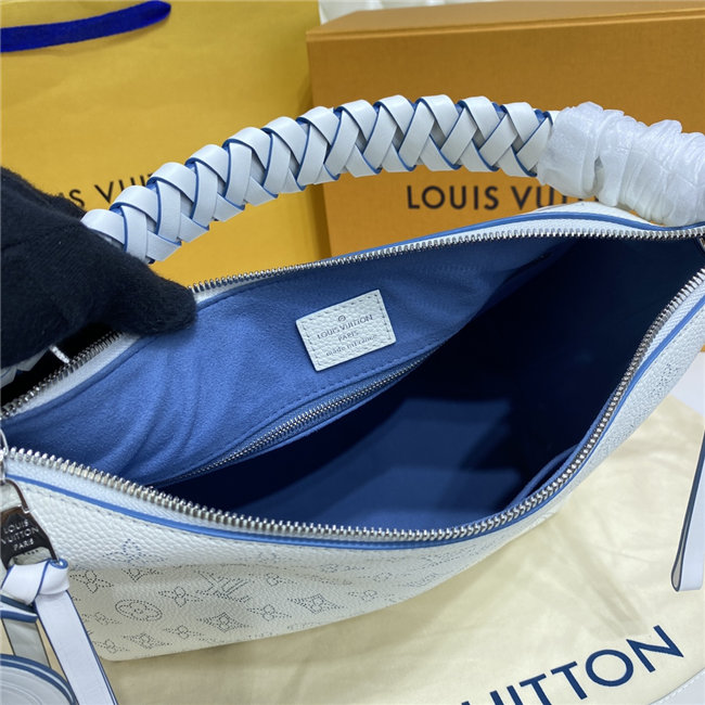 The Beaubourg Hobo MM bag is made from Mahina calf leather perforated with the Monogram pattern. It boasts a stylishly braided-leather top handle, with hand-painted edge-dyeing along the braids. The leather zip pulls and large LV charm sign the bag. A detachable, wide leather strap means that this supple bag feels comfortable against the body.