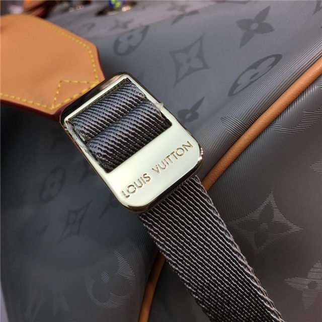 Louis Vuitton”s iconic Keepall Bandouliere 50, the original soft travel bag, is revisited for this special edition in key materials from the Fall-Winter 2018-19 men”s fashion show. Here, it comes in gray Monogram Titanium canvas and features natural cowhide-leather trim, textile handles and a removable shoulder strap embossed with the House signature.
