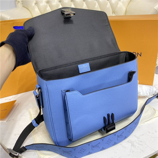 Generous capacity and functional features make the New Messenger (MESSENGERAMA) a great companion for city life. Introduced in the latest Taigarama collection, this easy-to-wear bag makes a strong style statement, with its signature mix of tone-on-tone canvas and supple Taiga leather. The secure snap buckle opens to reveal a roomy front pouch and dual inside pocket.