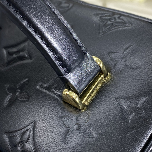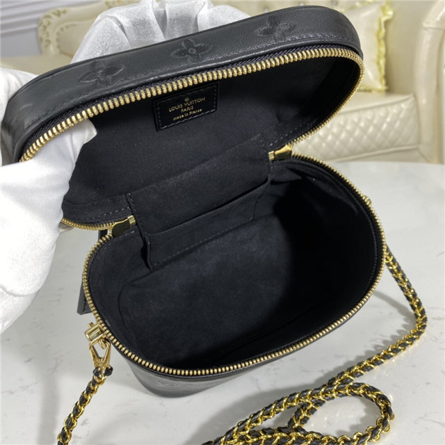 The compact Vanity PM handbag comes in black Monogram-embossed lambskin leather for Fall-Winter 2020. The gold-color padlock, top handle, and distinctive shape pay homage to Louis Vuitton’s travel heritage. Lightweight and supple, it is comfortable to carry by hand and on the shoulder or cross-body thanks to its removable braided-leather chain.